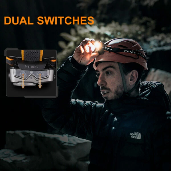 Whatโs included: Fenix HP16R headlamp, rechargeable battery, USB-C cable, head strap with top strap, spare O-ring, helmet clips (for attaching headlamp to a hard hat), mesh storage bag