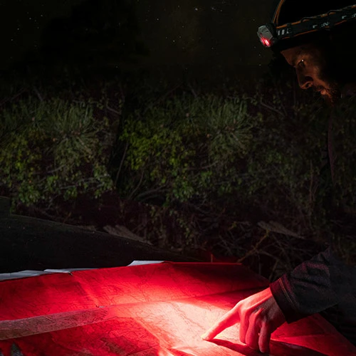 โข white spot and white flood lighting modes plus low light red